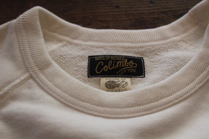 着用と洗濯を繰り返しても首元がよれにくいように、首リブ仕様の中でも丈夫な、バインダーネックを採用。袖はラグランスリーブ、カットオフ仕様。ホワイト、ネイビー