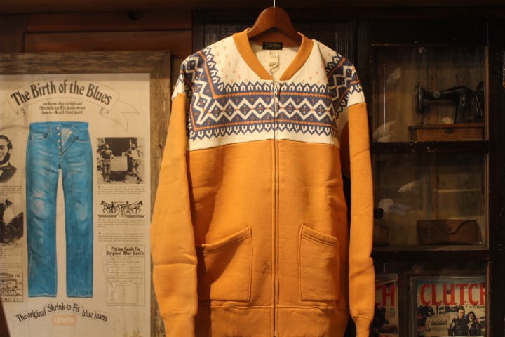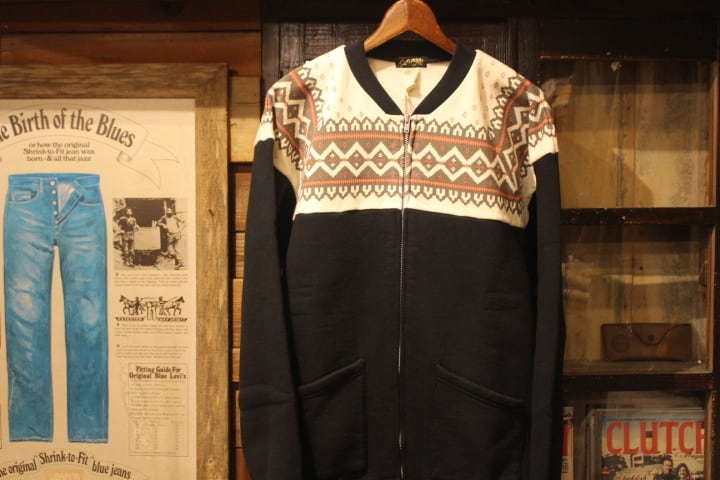 北欧ニットにみられるような雪の結晶をモチーフにした雪柄スウェット。肉厚感と裏起毛のオリジナル生地で仕上げられたたヘビーウェイト生地を採用。フロントジップタイプでデイリーからアウトドアまで幅広く着用できる。1950年代~60年代ノルディックやスキーのイメージで親しまれていた1着。
