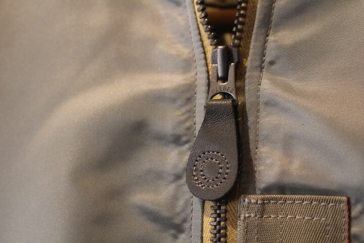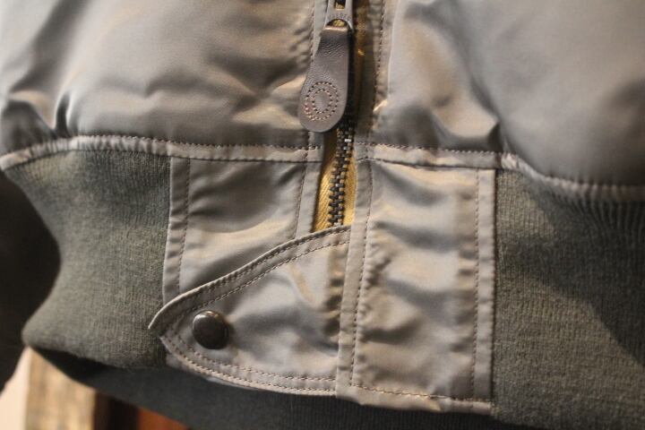 今作は1950年代初頭のL-2Bをベースに製作。オレンジカラーのライニングになる直前のモデルをモデルアップ。使用している生地には実物同様「66 Nylon Twill」を使用。
