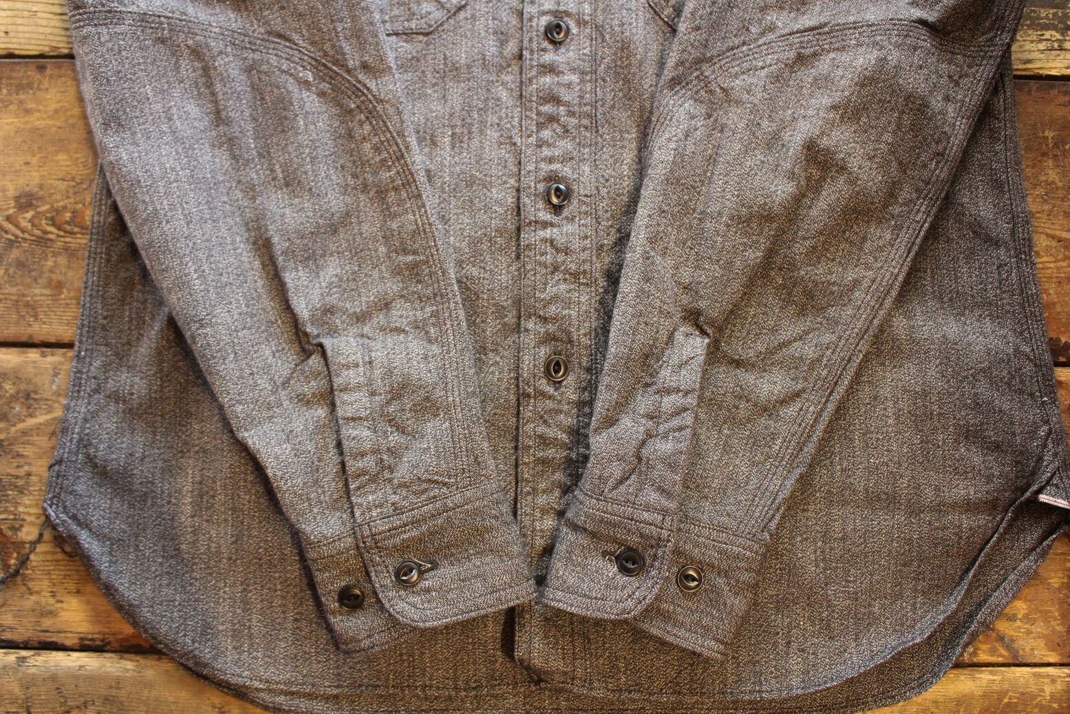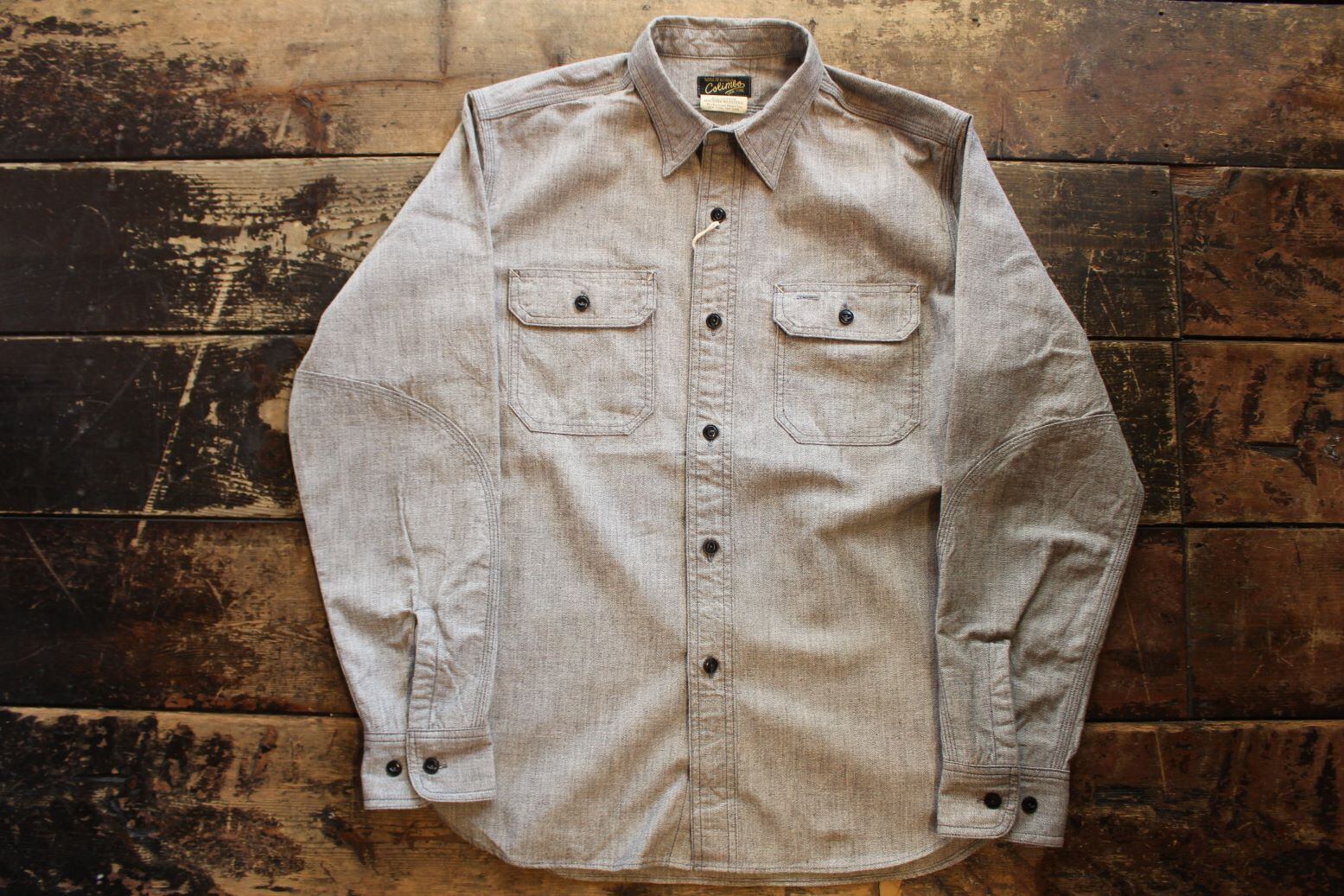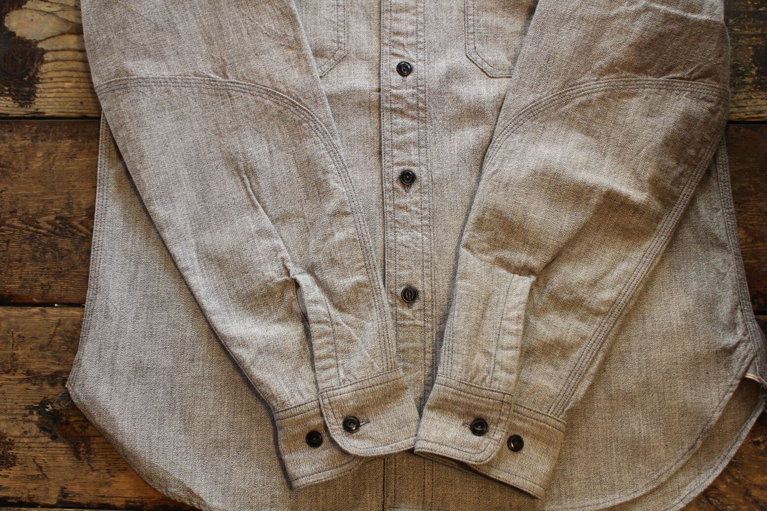 1950年代頃のワークシャツに見られるデザインをベースに作られたホワイト、ブッラクシャンブレーシャツ。