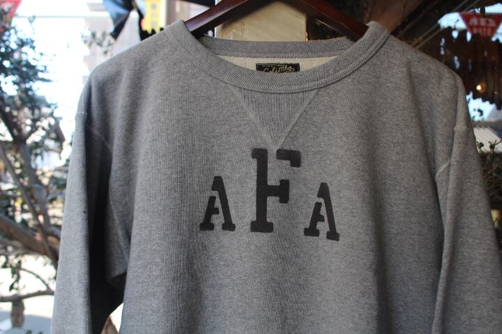 形はオールドスタイルで、やや広めの首元フロントは三角形にカットして別の生地を縫い合わせてはめ込みんだガゼット、袖付けはセットインスリーブ、4本針フラットシーマー仕様、ループウィラー製法で仕上がっています。着込むほどに風合いが増していき裏毛側は起毛処理していないタイプですので、3シーズンは万能にお使い頂けます。