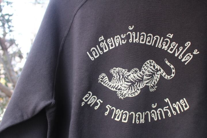 形はラグランスタイルで、ループウィラー製法による丸胴、裏毛側は起毛処理していないため、3シーズン着用が可能なアイテム。