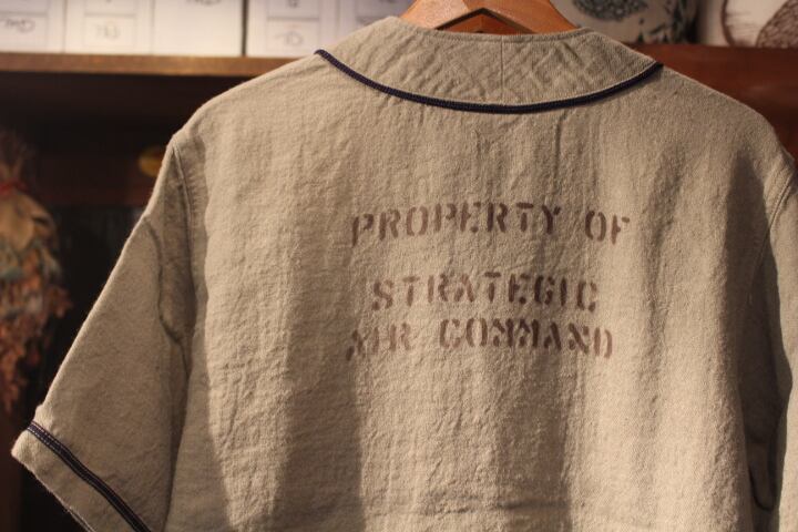 米空軍の兵站を担う巨大組織であるAMCは資機材や 各種物資をはじめとするあらゆるマテリアルを世界中 に輸送できる能力を持っていた。製品ではそんな彼らのレクリエーションであった野球チームのプレイシャツ を再現。恐らくは既製品であろうボディにコンバットクロ ージングと同様の手段でステンシルを行っている。