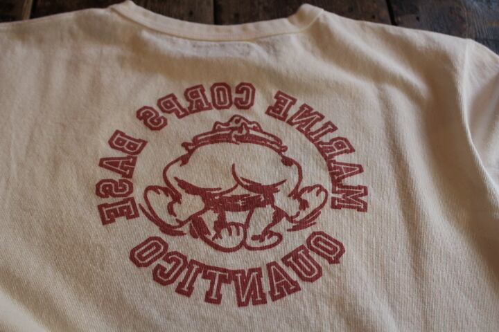 1917年、バージニア州北部に創設された海兵基地。主な運用として様々なランクや技能向けに設けられたトレーニングセンターでクロスロードオブUSMCなどとも呼ばれている。生地にはヘヴィーウェイト生地を採用。しっかりとした着心地とハリコシのある厚みのあるドライな生地で、タフに着込むほどに風合いが増すいい生地感となってます。